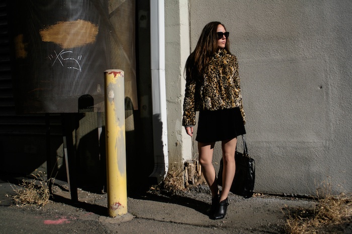 Driving down the mountain in: Céline sunglasses, American Apparel hoodie, J. Crew shirt, J Brand